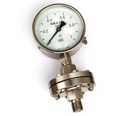 膜片壓力表由測量系統(tǒng)(包括法蘭接頭、波紋膜片)、傳動指示機構(包括連桿、齒輪傳動機構、指針和度盤)和外殼(包括表殼和罩圈)等組成。膜片壓力表外殼為防濺結構,具有較好的密性,故能保護其內部機構免受污穢浸入。